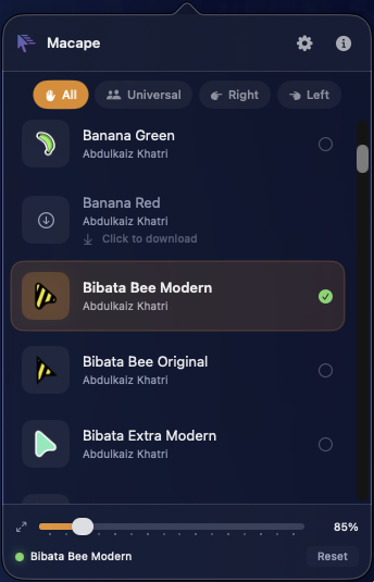 Macape to nowoczesna aplikacja dla macOS Sequoia (15.0+), która pozwala na zmianę domyślnego kursora systemowego na jeden z ponad 40 dostępnych motywów. Aplikacja została stworzona jako odpowiedź na ograniczenia wprowadzone przez Apple w najnowszych wersjach systemu, gdzie tradycyjne metody modyfikacji kursora przestały działać.